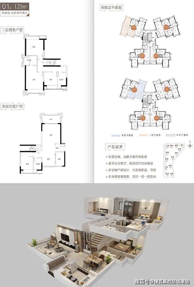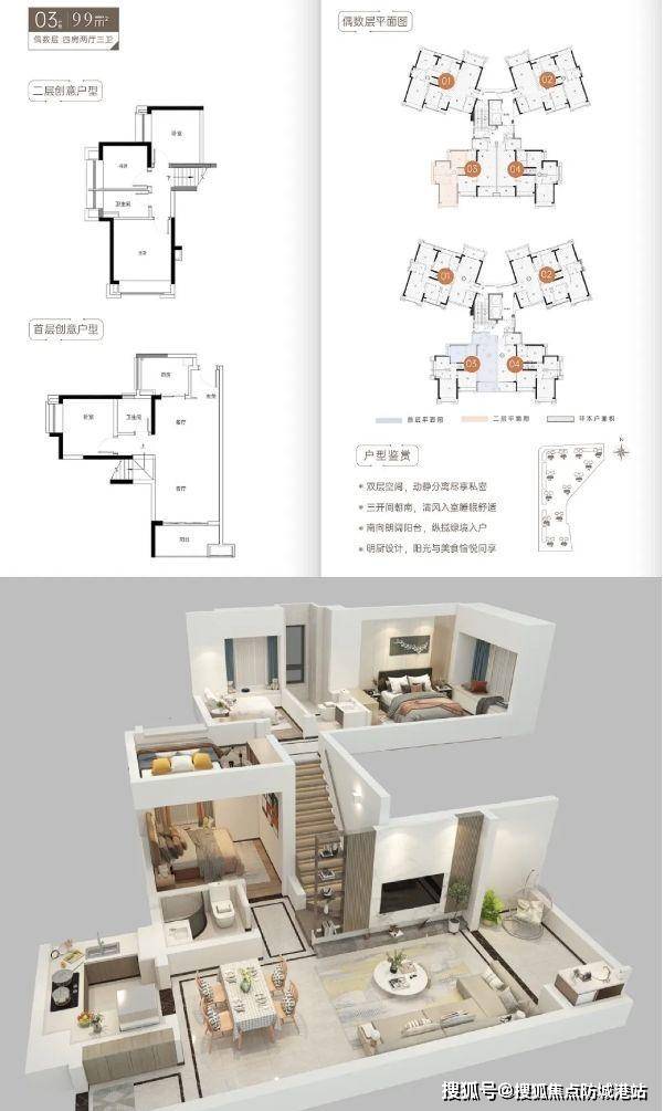 目前项目约 99 - 121㎡全南向复式创意四房户型即将发售,